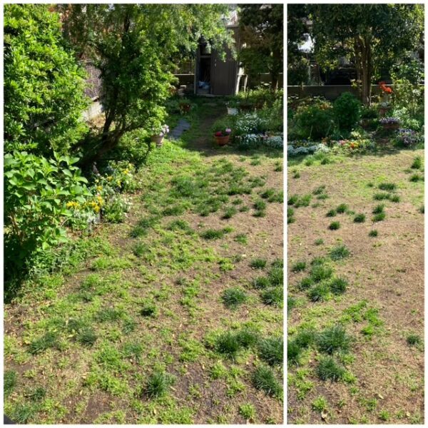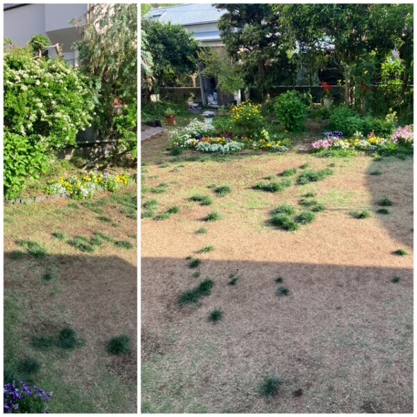 そして、芽吹き始めた昨年蒔いた芝草の種。