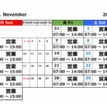2025-10-21 / 最終更新日時 : 2025-10-21 pan-niko お知らせ 11月の営業スケジュール 11月の営業スケジュールをご案内申し上げます。 11月は通常通りの営業です。金・土 07:00 – 14:00 日 07:00 – 15:00どうぞ宜しくお願い致します。